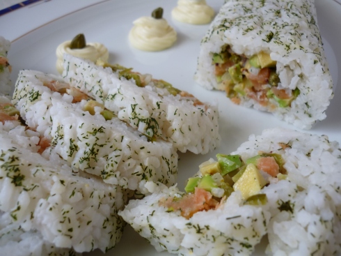 Patricia, del blog Recetas... y lo que se me ocurra, nos propone un Brazo gitano de salmón y aguacate.