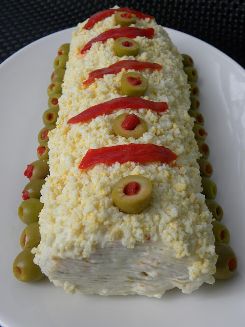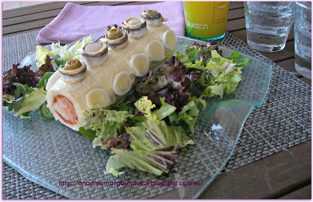 M.Luz, del blog Trasteando en mi cocina, nos propone un Brazo de gitano relleno de ensaladilla