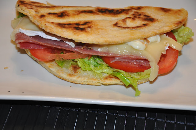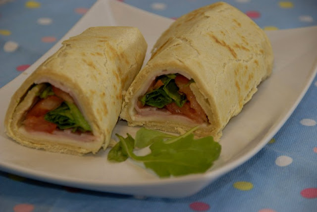 Maribel , del blog Cocinillas de Maribel , nos propone unas Piadinas rellenas de jamón, queso brie, lechuga y tomate