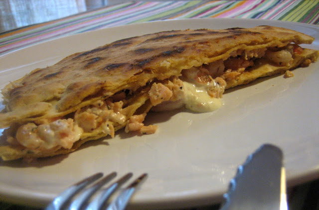 Javi, del blog Pasajero a Frankfurt, nos propone unas Piadinas de salmón, gambas y mascarpone