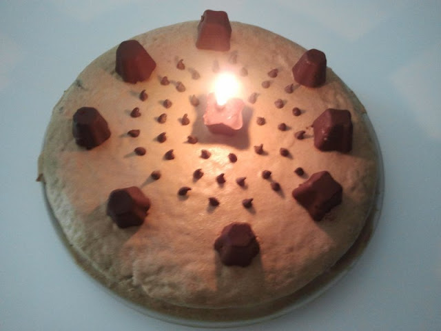 Pues bien, ¿Cómo se celebran los cumpleaños? Pues con una tarta. Así que la propuesta que hemos hecho este mes ha sido precisamente eso: UNA TARTA CON UNA VELITA.