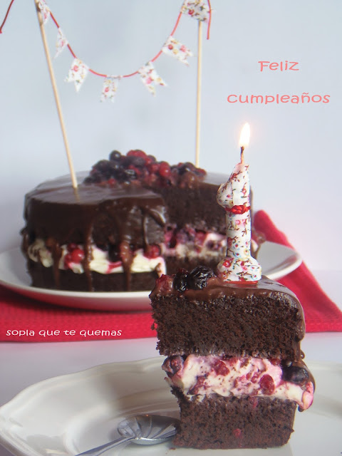 Marta, del blog Sopla que te quemas, nos propone Tarta de chocolate con crema de queso y frutos rojos