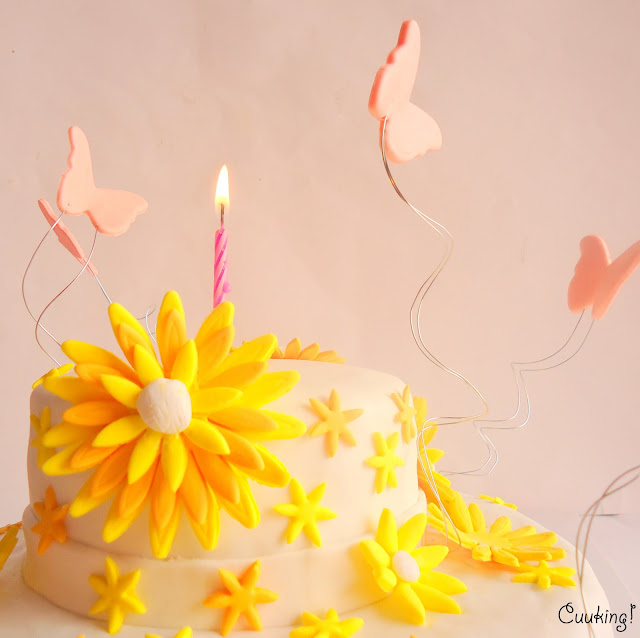 Juanan , del blog CuuKing , nos propone una Tarta primaveral (margaritas y mariposas)