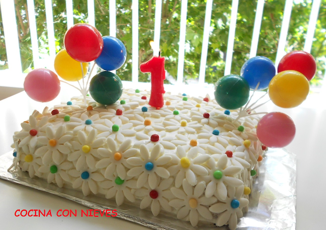 Vivi, del blog Ò carón de Lareira, nos propone Tarta 1º cumpleaños desafío en la cocina