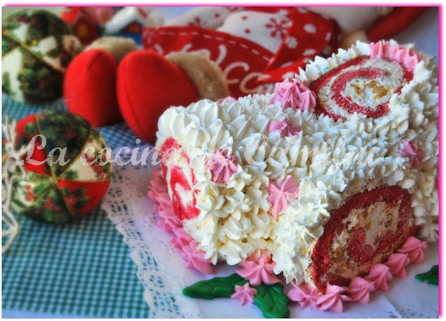 Carmen, Mila y Nina, del blog La cocina de Camilni, nos proponen: Tronco nevado de nata y turrón.