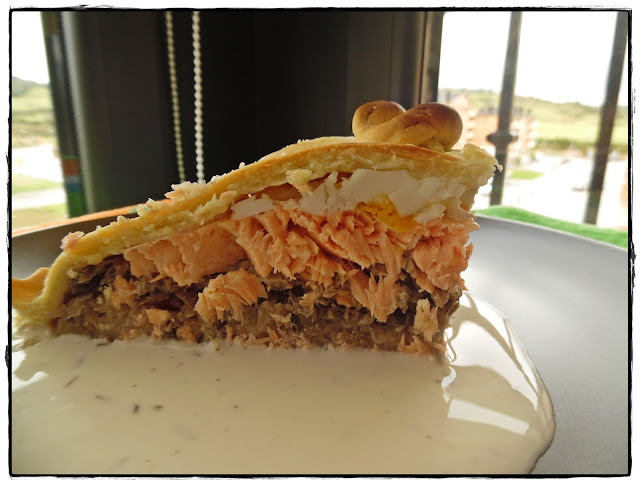 M.Jesús Prieto, del blog Especias y letras. , nos propone un Kulibiak de salmón y salsa de setas