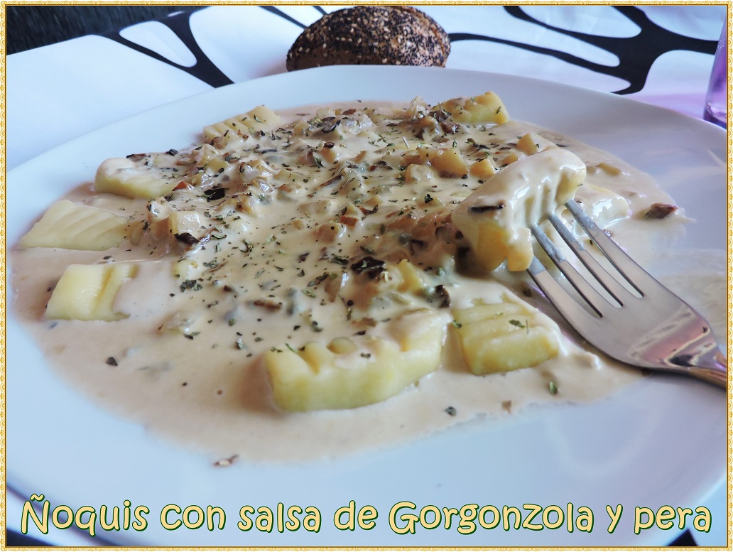 María, del blog Fogones y melones. , nos propone Ñoquis con salsa de gorgonzola y pera