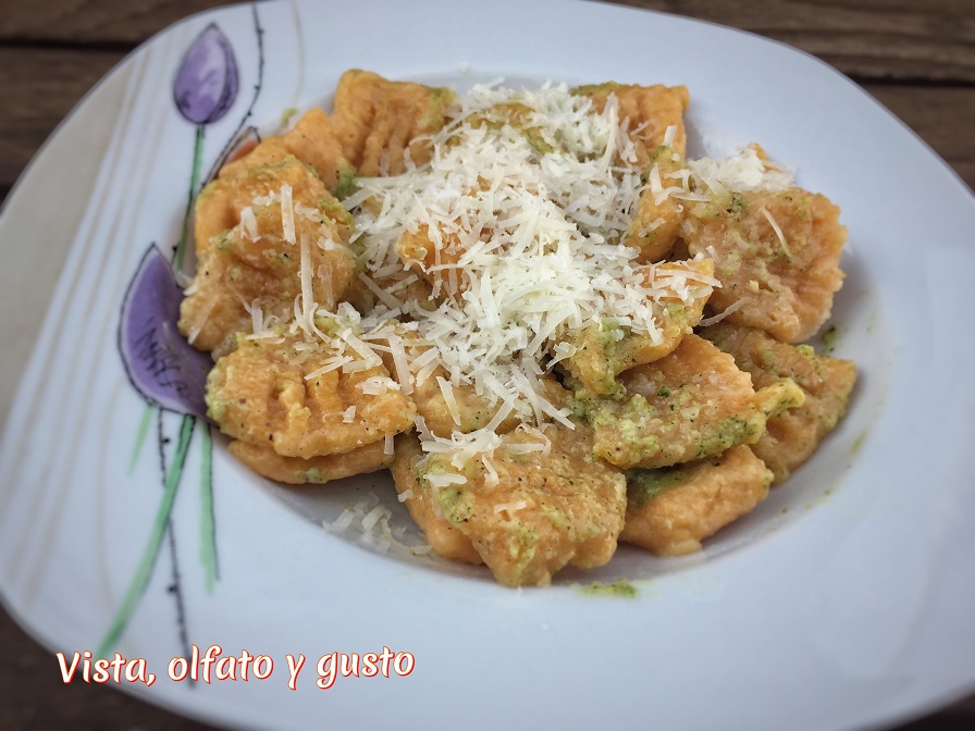Carolina, del blog Tomillo, laurel y otras cosas de comer, nos propone Gnocchis de calabaza con salsa de berros