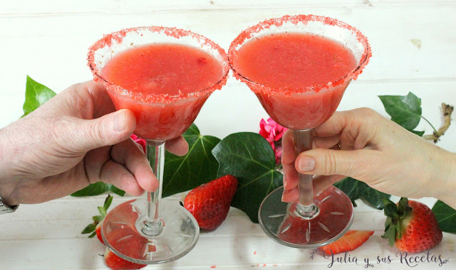 Julia, del blog Julia y sus recetas. , nos propone Daiquiri de fresas con ginebra de fresas o ginebra rosa