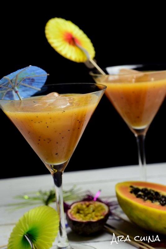 Sussi , del blog Ara cuina , nos propone Cóctel afrodisíaco con papaya y fruta de la pasión