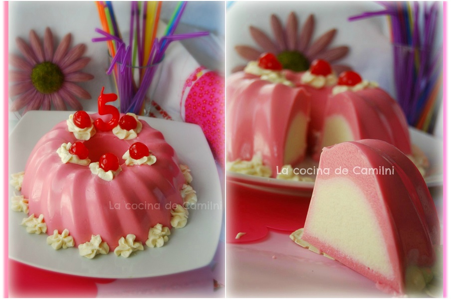 Mila y Nina, del blog La cocina de Camilni, nos proponen Flotatina de fresa rellena de queso y leche condensada